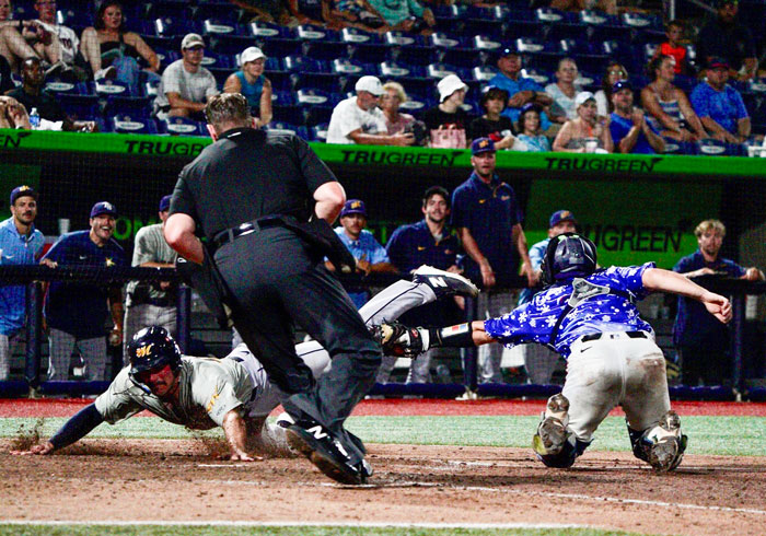 In the top of the tenth, Montgomery took a two-run lead after a double from Matthew Etzel off of Will Kempner (L, 0-1), with Tatem Levins getting just under Ryan Ignoffo’s tag at the plate, infuriating the Blue Wahoos on the field and in the dugout. Following the play, multiple ejections ensued, including reliever Ricky DeVito in the bullpen and second baseman Cody Morissette.