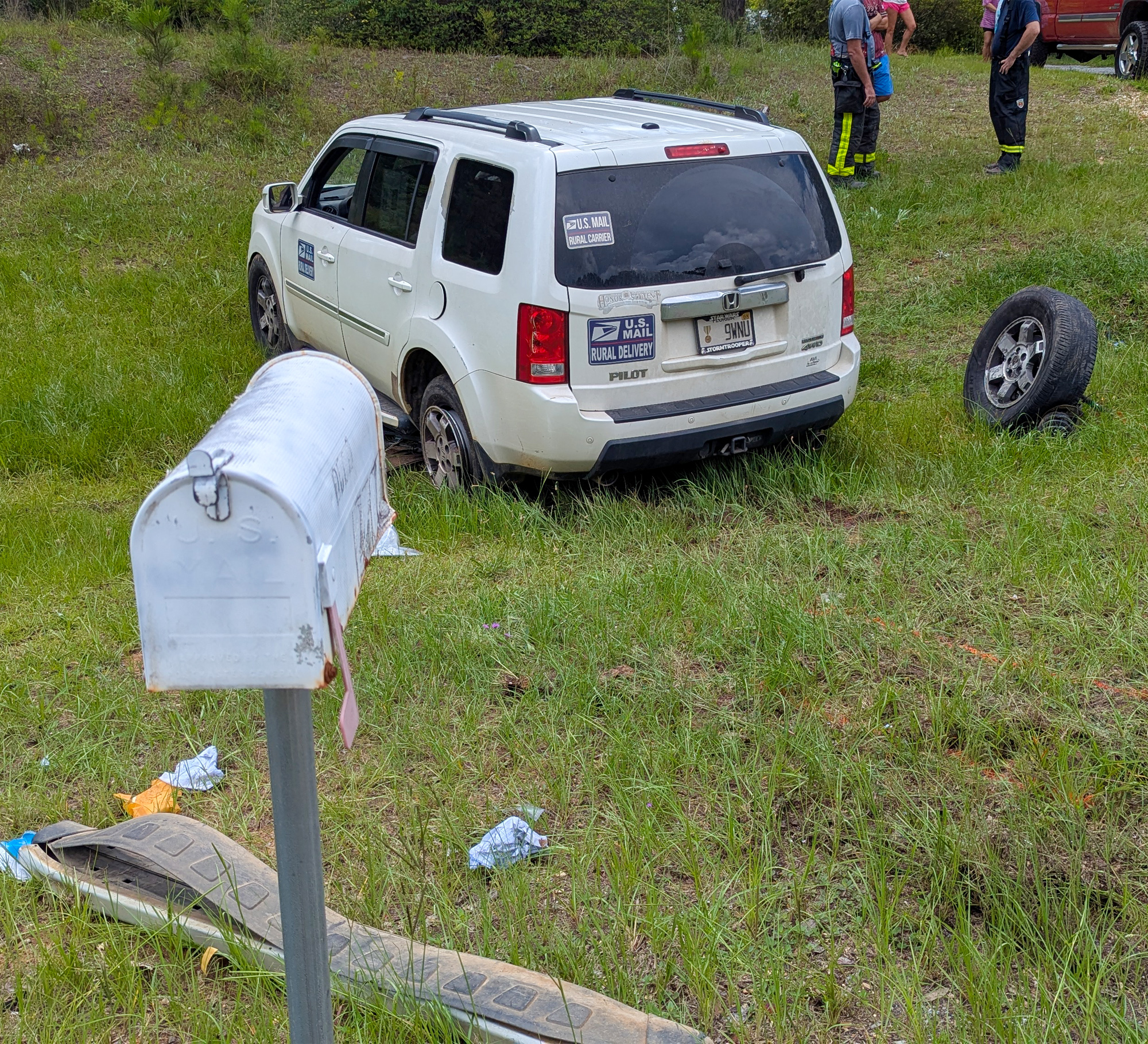 A rural mail carrier was at fault in a two vehicle crash Saturday morning on Highway 29, according to a Florida Highway Patrol report released on Tuesday morning.