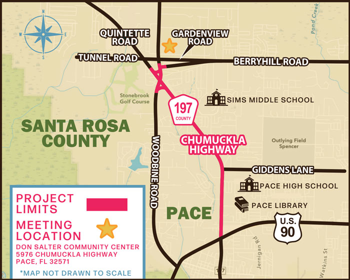 Santa Rosa County is conducting a PD&E Study to consider widening C.R. 197 Chumuckla Highway from U.S. 90 to Five Points Intersection. This project is intended to support all modes of transportation by increasing capacity on Chumuckla Highway by widening the roadway to relieve congestion, decrease travel times, and support bicycle and pedestrian movements.