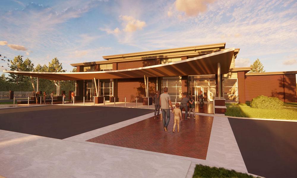 Pictured: Renderings of a new auditorium recently approved for Escambia High School. A new auditorium at Tate High School will have a similar design. Images for NorthEscambia.com, click to enlarge.