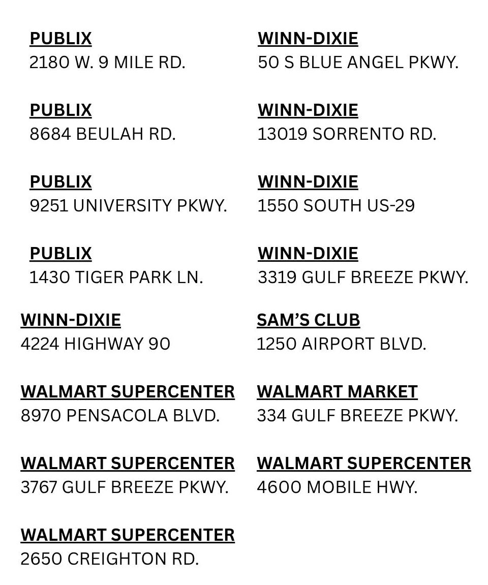 For the complete list of locations across Escambia and Santa Rosa counties for Friday, click here.