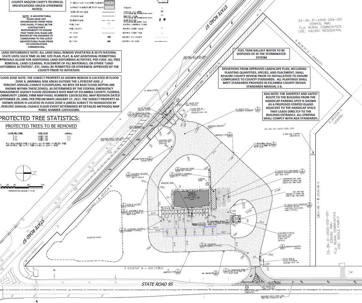 According to DRC documents, Casey’s will still need approval from the Florida Department of Transportation for access to Highway 29 and Highway 97, both state roads. Building permits from the county will also be required.