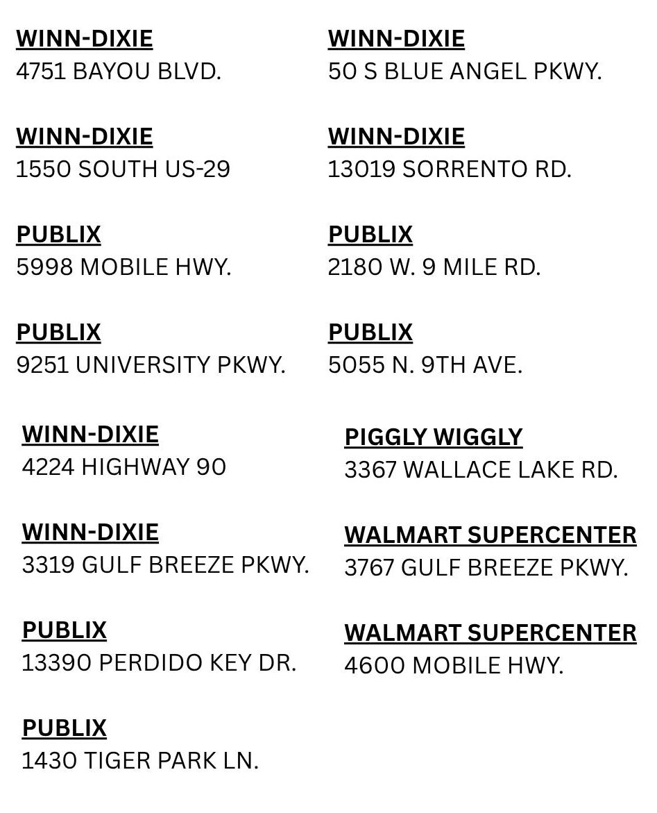 For the complete list of locations across Escambia and Santa Rosa counties for Thursday, click here.