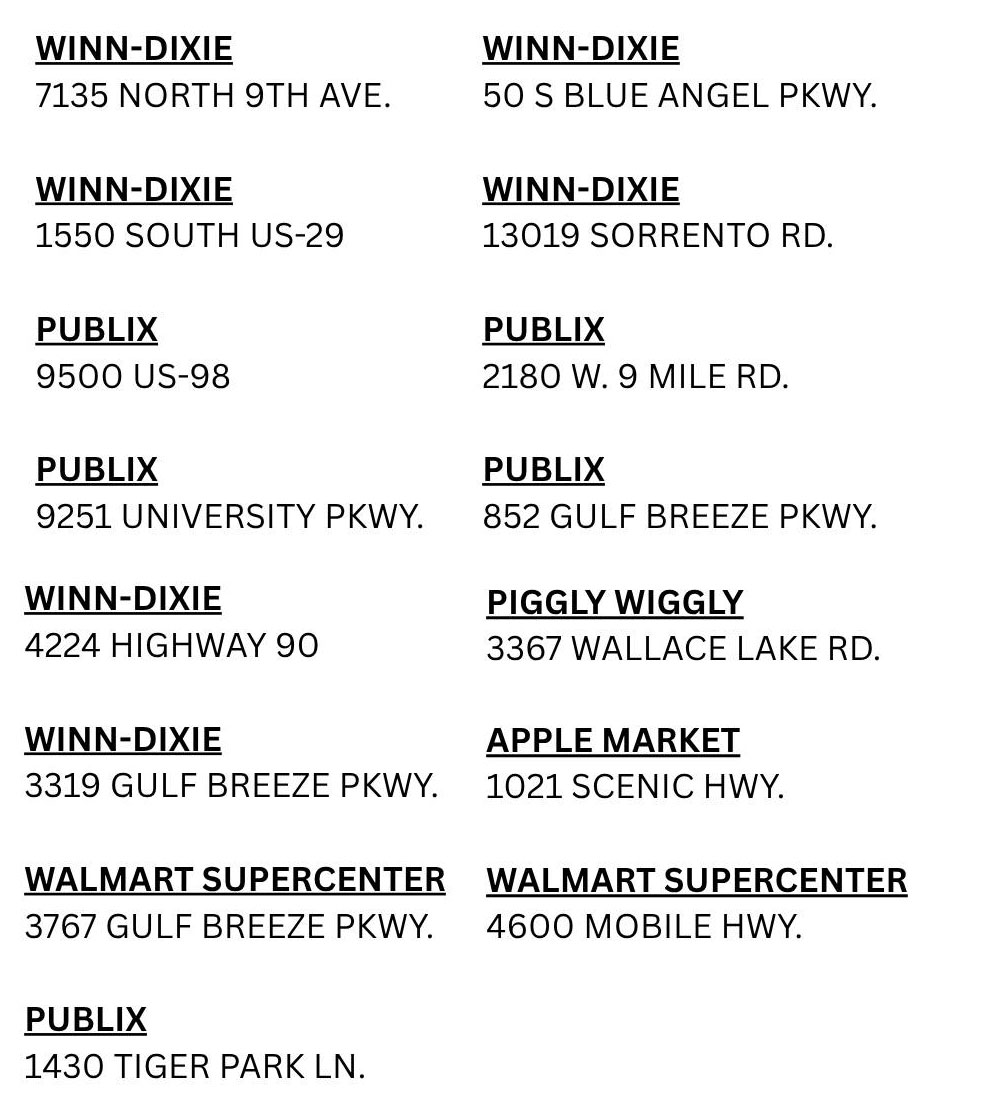 - Publix — 2180 West Nine Mile Road (Nine Mile at Pine Forest)