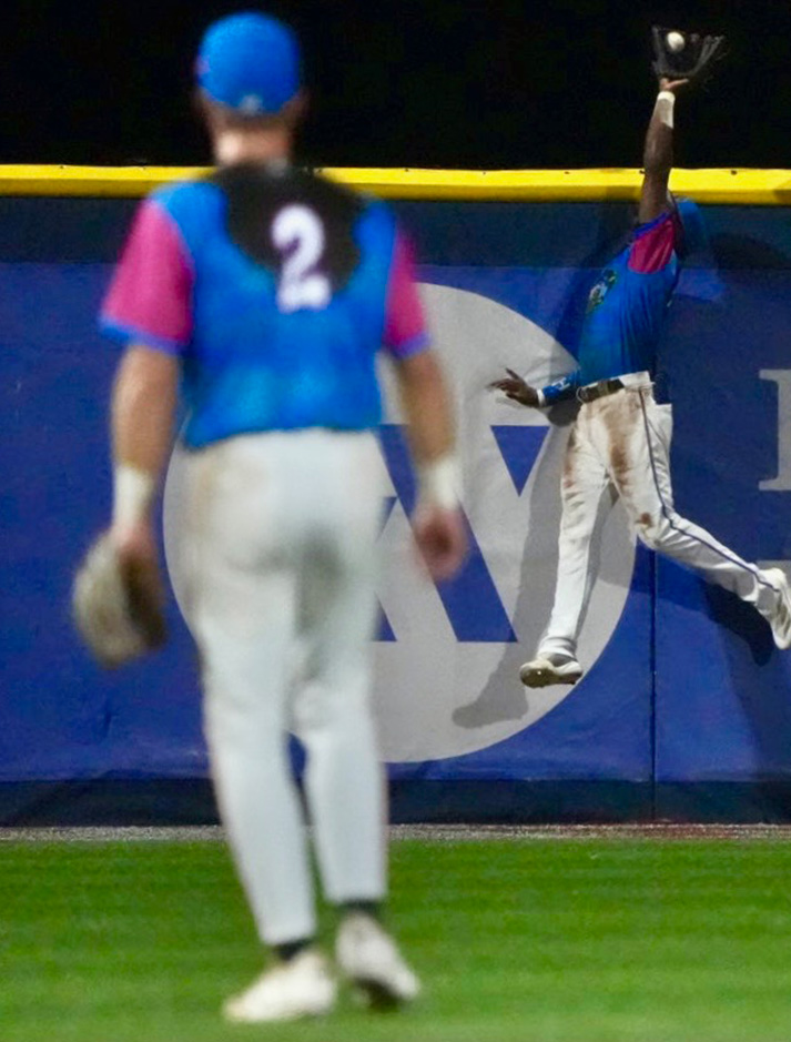 Also phenomenal was a catch made by Blue Wahoos left fielder Dalvy Rosario, who got a late jump on a blast by catcher Adam Zebrowski. As the ball was going over the left field wall, Rosario perfectly timed his leap and came down with the ball in one of the best home-run-robbing catches seen in this ballpark.