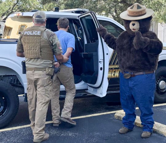 Smokey Bear assisted in the arrest, Simpson said. The suspect’s name and exact charges were not released.