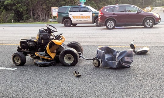 “The driver of the Honda did not see the individual on the riding lawnmower with enough time to adequately apply the brakes in time to avoid a collision,” FHP said, noting that the speed limit in the area is 65 mph. “As a result, the front of the Honda sedan collided with the rear of the riding lawnmower.” The lawnmower was pulling an unoccupied children’s wagon.