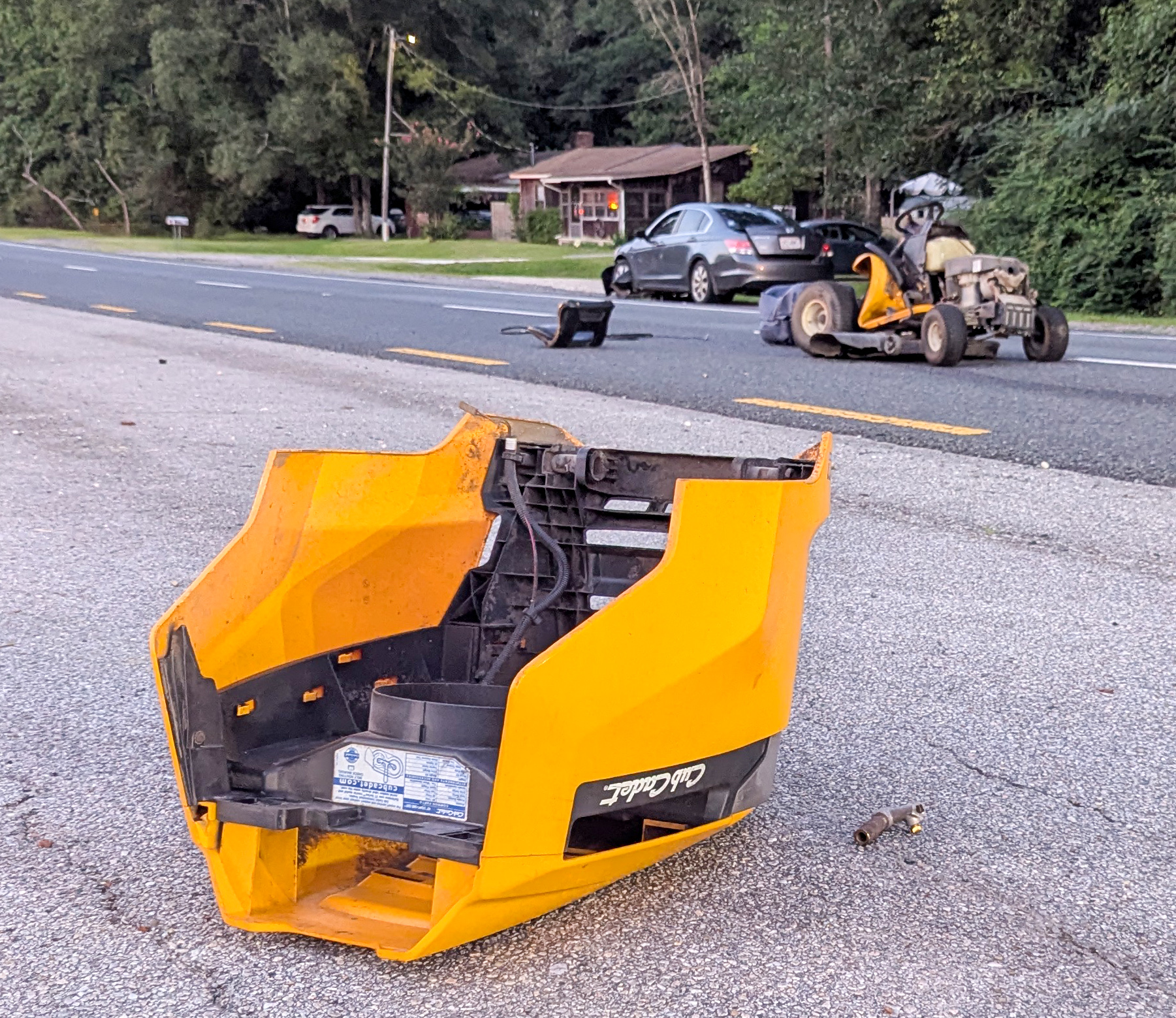 The 61-year-old McDavid man was driving a Cub Cadet lawnmower in the right northbound travel lane of Highway 29 near Bogia around 7:30 p.m., according to the Florida Highway Patrol.
