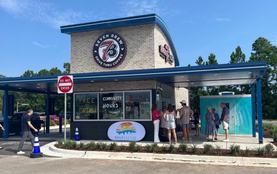 Pictured: The latest 7Brew in Escambia and Santa Rosa counties opened on July 23 in Gulf Breeze. Photo for NorthEscambia.com. Pictured below: A 7 Brew planned for Nine Mile and University. NorthEscambia.com graphic.