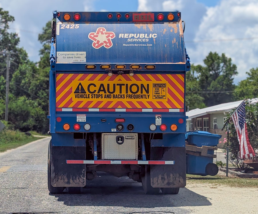 Pictured: Century’s solid waste contractor, Republic Services, collects along Jefferson Avenue. NorthEscambia.com file photo, click to enlarge.