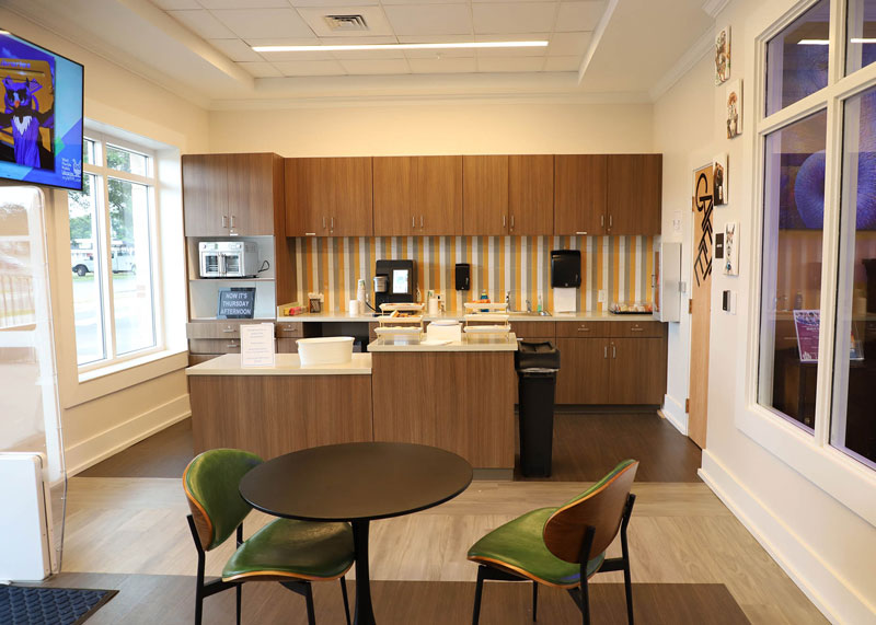 Escambia County purchased the former Masonic Lodge building to convert into a new 8,000-square-foot library and community space in the heart of Brownsville. The first floor features a public library and café space, with a large multi-use space on the second floor for senior activities, children’s programs, classes and events.