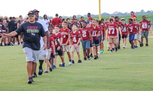 Fans will be introduced to the Northview Chiefs football team, cheerleaders and Tribal Beat band. The football teams and cheerleaders from the Northwest Escambia Chiefs and Century Blackcats are scheduled to be introduced, as are the cheerleaders and football players for the Ernest Ward Middle School Eagles.