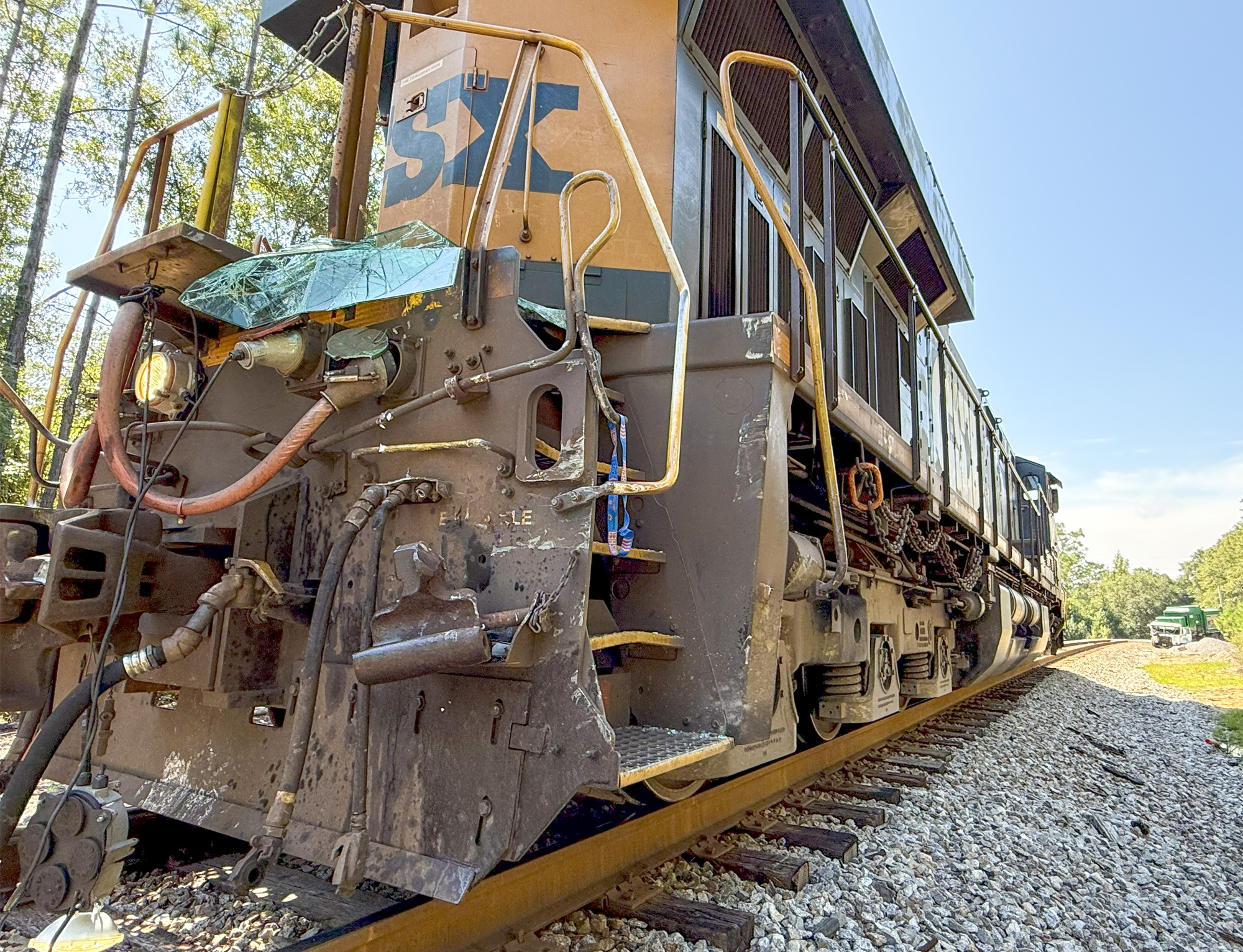 The windshield from the ECUA truck was still hanging on the locomotive when it came to a stop a short distance away. It did not derail, and there was no obvious damage to the tracks.