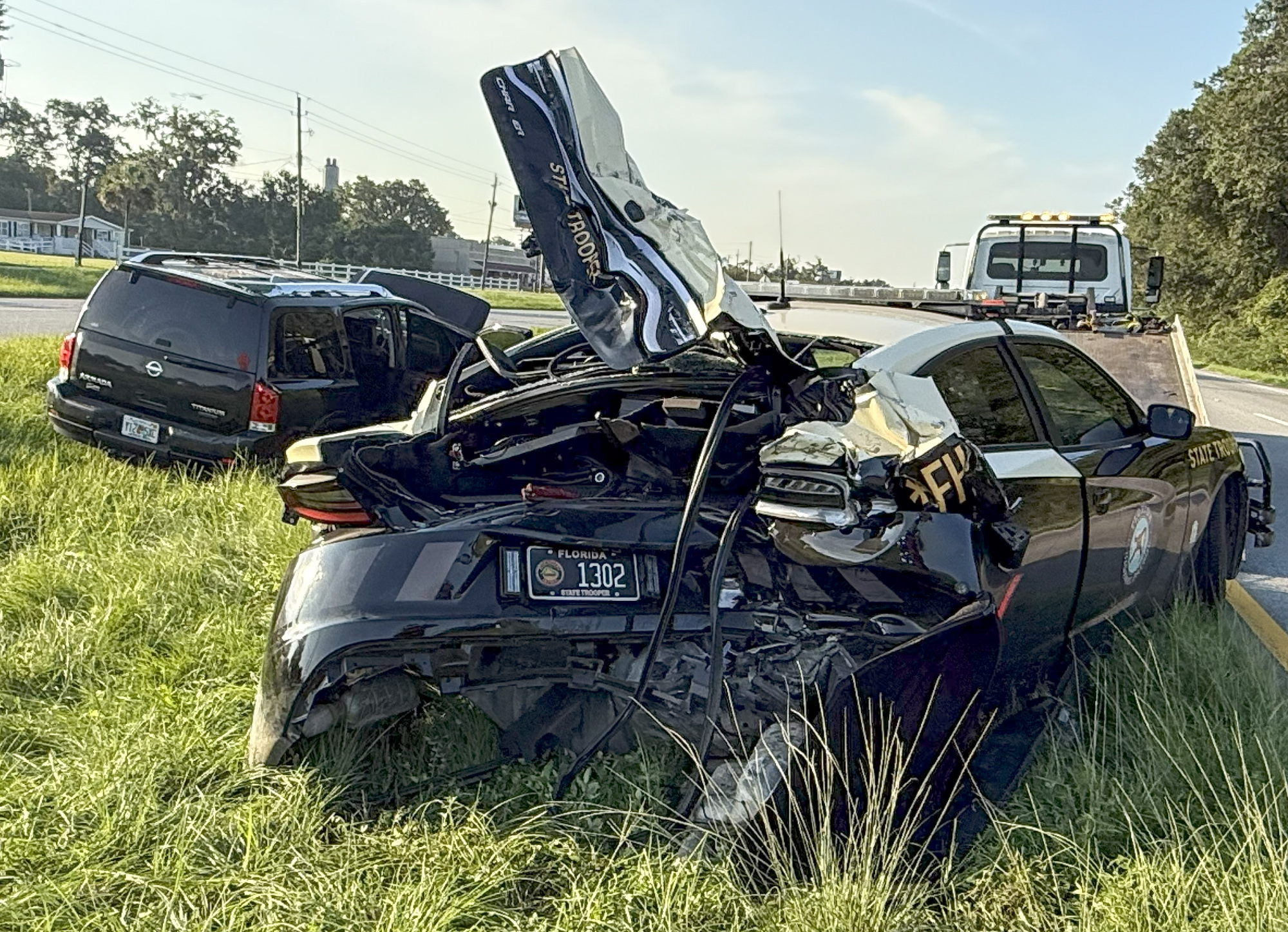 FHP said White rear-ended a 27-year-old male trooper who was investigating a previous crash on Highway 29 just south of West Roberts Road.