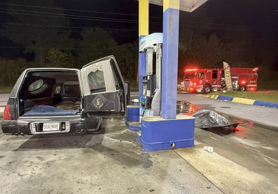 There were no injuries reported. There was no casket or cargo in the vehicle, which belonged to Turner Funeral Chapel.