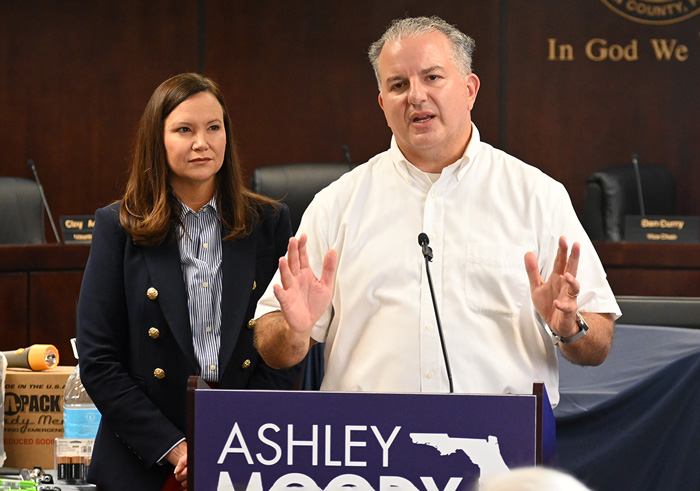 U.S. Rep. Jimmy Patronis, Senator Ashley Moody and others officials stood together Friday in Defuniak Springs to use Floridians to prepare for early for potential tropical storm risks. Friday marked the start of peak hurricane season, and from August to October, 93% of hurricane landfalls on the U.S. Gulf and East coasts occur. They encouraged Floridians to not wait until a storm is imminent to make safety plans to protect their families or property.