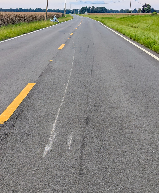 Her Harley-Davidson struck a deer on Pine Forest Road about 1,300 feet north of Deer Lake Road around 6:10 p.m. The woman and the motorcycle slid nearly 100 yards.