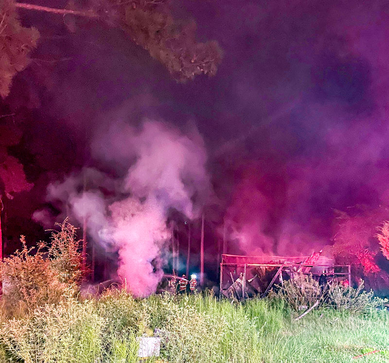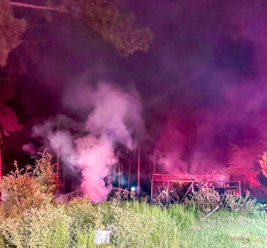 Fire departments from Escambia and Santa Rosa counties responded to a shed and camper fire Tuesday night.
