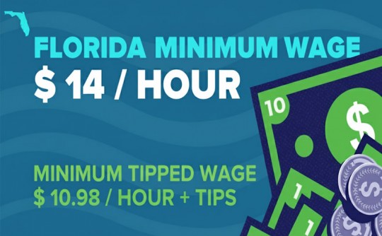 Effective September 30, the Florida minimum wage increased $1 to $14 per hour. The minimum wage for tipped employees is now $10.98, in addition to tips.