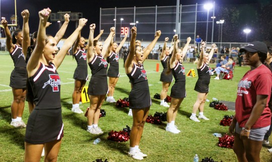 For a bonus photo gallery with the cheerleaders, fans and band, click here.