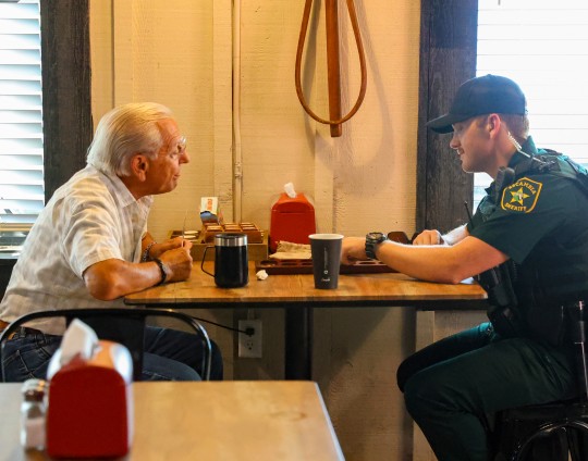 Coffee with a Cop provides a unique opportunity for community members to ask questions and learn more about the Escambia County Sheriff’s Office’s work in the community. It is a great way for Escambia County deputies and community members to come together, build relationships, and, of course, drink coffee.