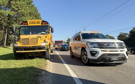 It happened around 8:15 a.m. on Highway 29 south of Muscogee Road and involved an Escambia County Public School bus and a pickup truck. The only damage was minor scrapes on both vehicles.