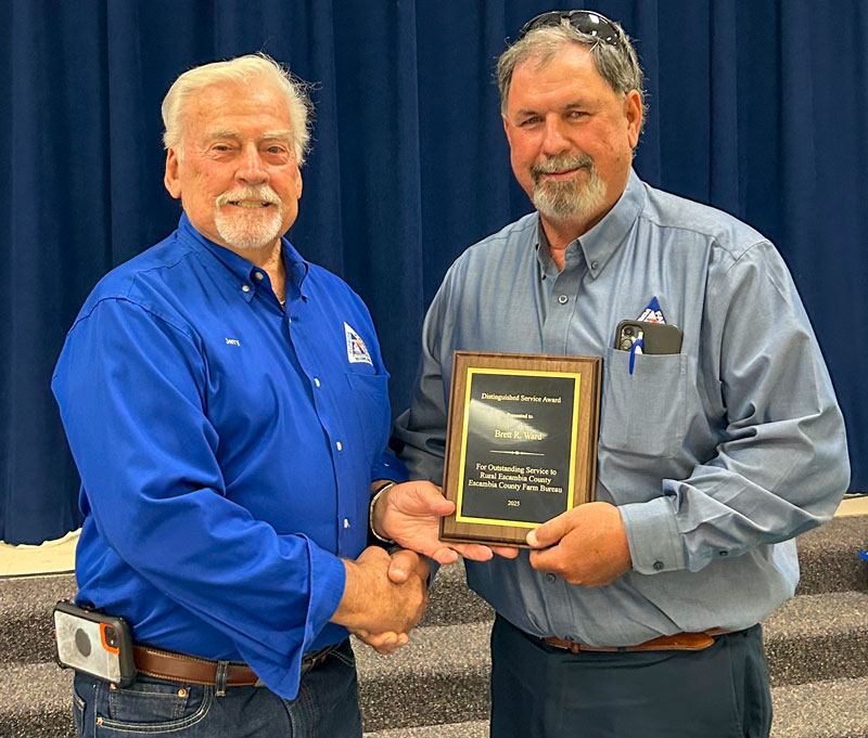 The Farm Family award was presented to the Glen and Todd Wiggins, and the Distinguished award was presented to Brett Ward of Walnut Hill for outstanding services to rural Escambia County.