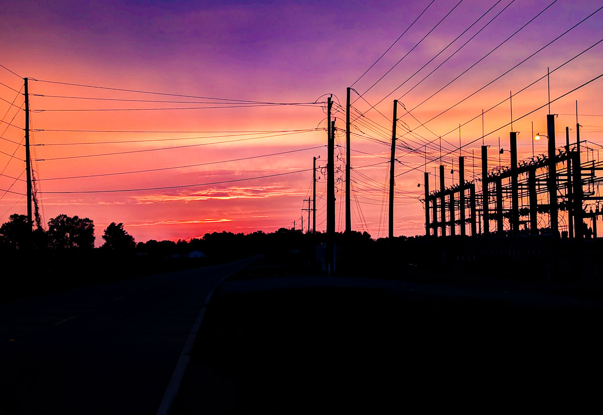 Pictured: An electrical substation near Walnut Hill at sunset Thursday evening. NorthEscambia.com photo, click to enlarge.