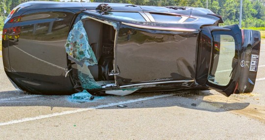 The collision involved a Mazda SUV and a Lexus sedan. The SUV overturned in the southbound lanes of Highway 29, coming to rest on its side. Both occupants suffered injuries that were not considered serious.