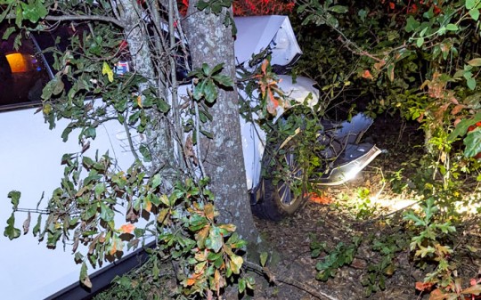 The woman’s northbound Mazda CX-5 SUV left the roadway for an unknown reason, struck a culvert and went airborne for about 60 feet. The SUV then traveled about 100 feet before striking an oak tree.