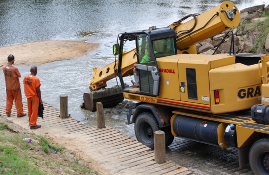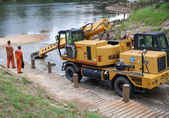 Escambia County Public Works worked Monday to remove sand from the boat launch at Fischer Landing in Century.