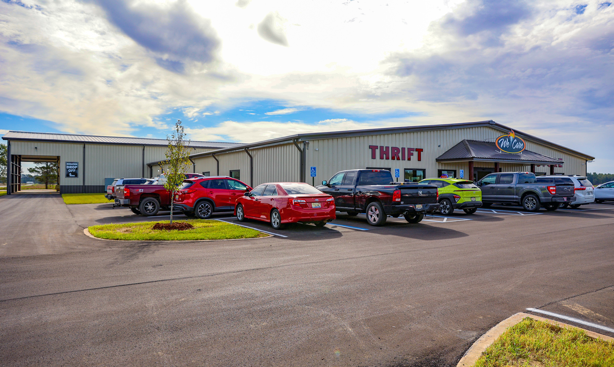 The Atmore We Care Thrift Store is located on Highway 21 at Northgate Drive, across from Hendrix Tractor and just over two miles north of the former store location in downtown Atmore. The brand-new 21,000-square-foot building includes a dedicated donation and sorting area and 10,000 square feet of retail space.