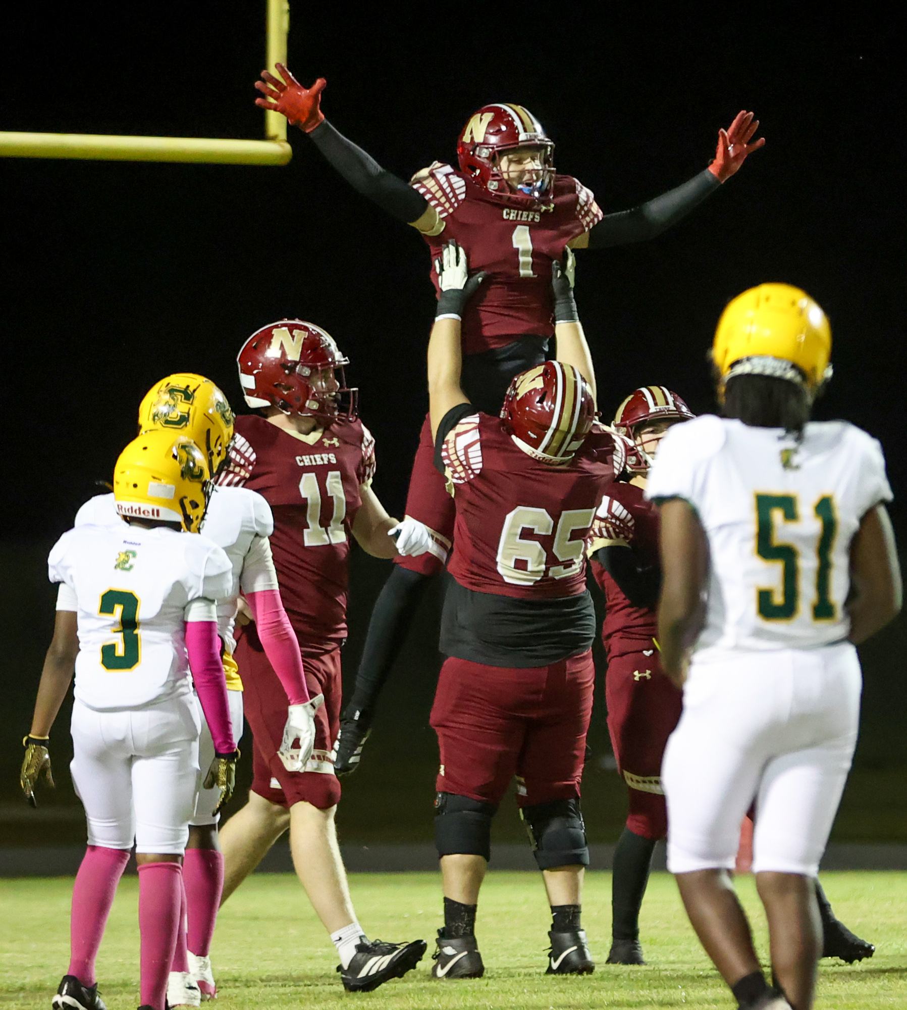 At the end of the first, Northview was up 47-0. After a scoreless second quarter, Tyler McAnnally added an 18-yard rushing touchdown in the third quarter for the Chiefs, and Wyatt Spence returned a punt 50 yards in the fourth quarter for NHS.