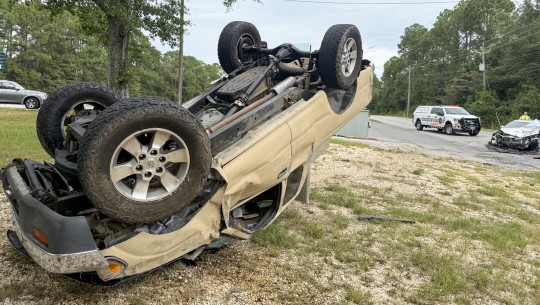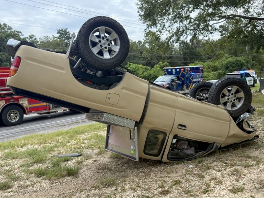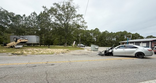 The crash happened north of East Kingsfield Road, near The Happy Taco and involved a car and a pickup truck. The truck came to rest on its roof in a vacant lot adjacent to the restaurant parking lot.
