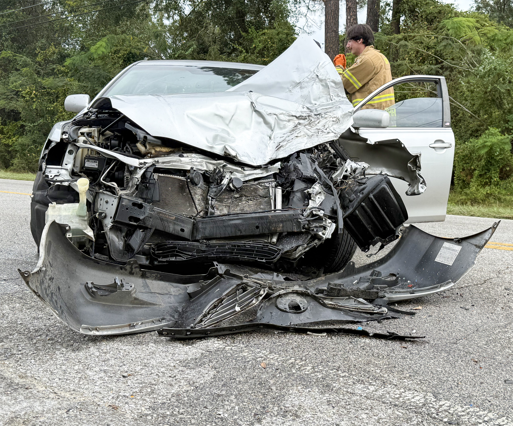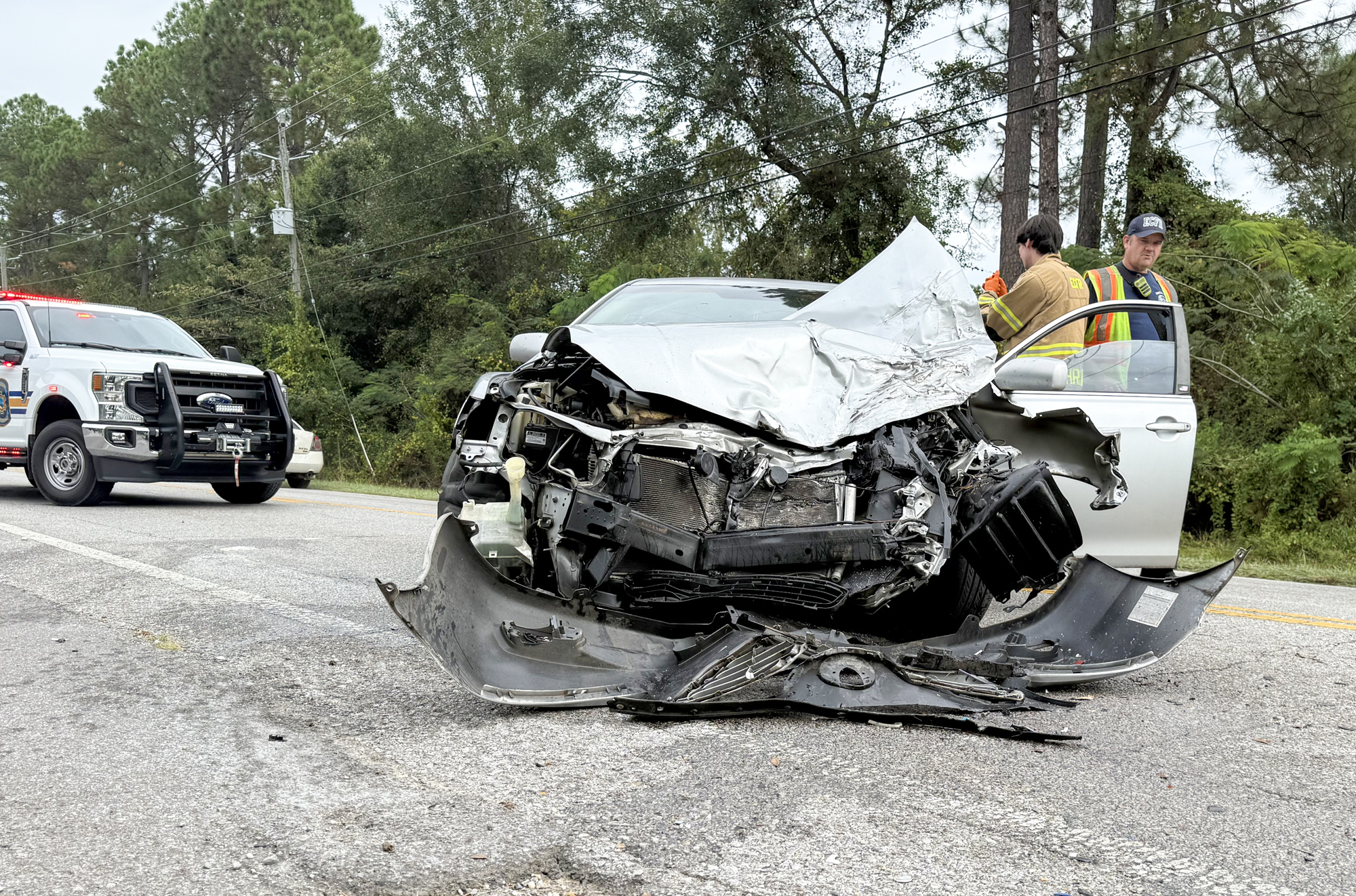 At least one person was injured in a two vehicle crash on Highway 95A in Cantonment on Saturday.