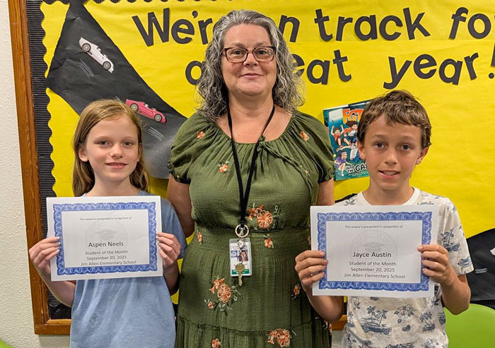 Jim Allen Elementary School named their September Students of the Month. They are Aspen Neels and Jayce Austin. Photo for NorthEscambia.com, click to enlarge.