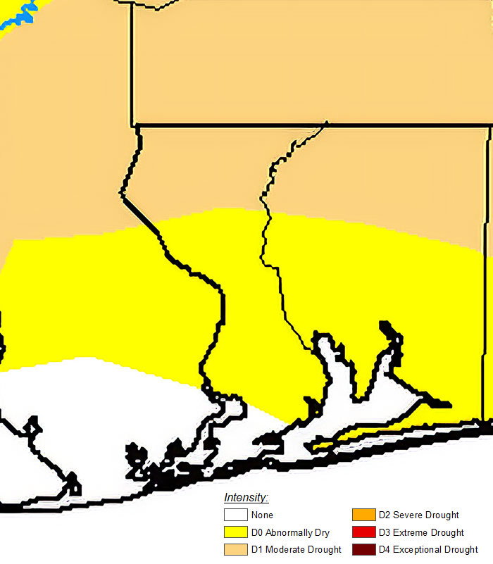 The Walnut Hill, Enon, Molino, and McDavid areas are experiencing drought conditions, according to the center (map below). The remainder of Escambia County is officially just “abnormally dry.”