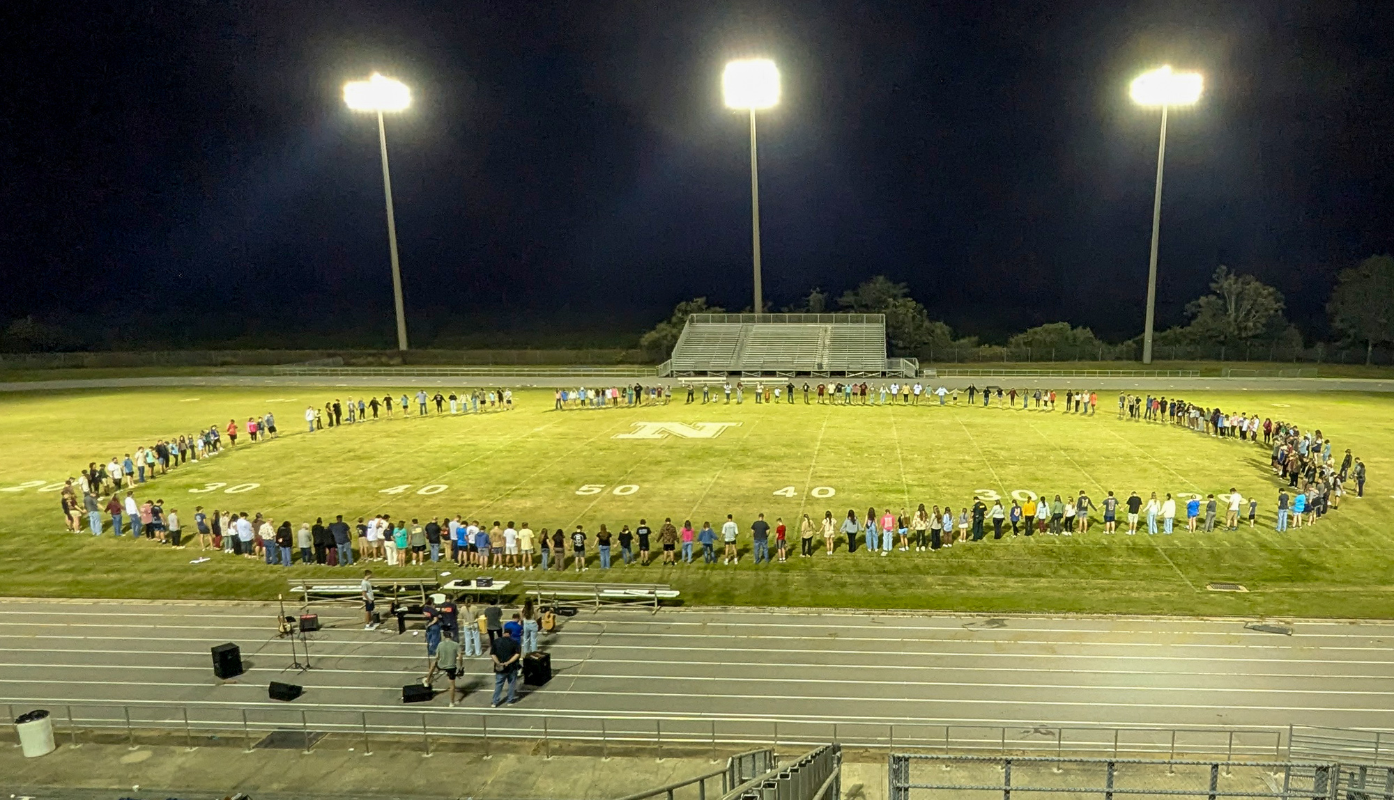 Several students gave their testimony during the service, which included worship music and concluded with about 300 people forming a prayer circle on the Northview football field, stretching from red zone to red zone.
