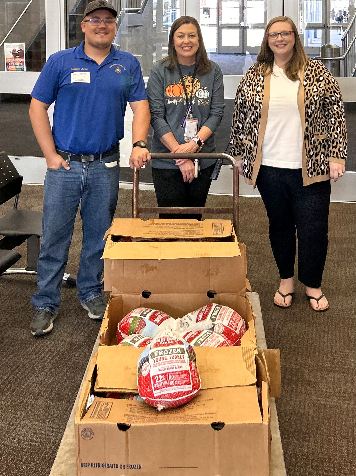 The food boxes, including turkeys, were donated to Ernest Ward Middle and Jim Allen Elementary schools.