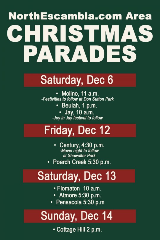 He’s a big list of NorthEscambia.com area Christmas parades coming up in December.