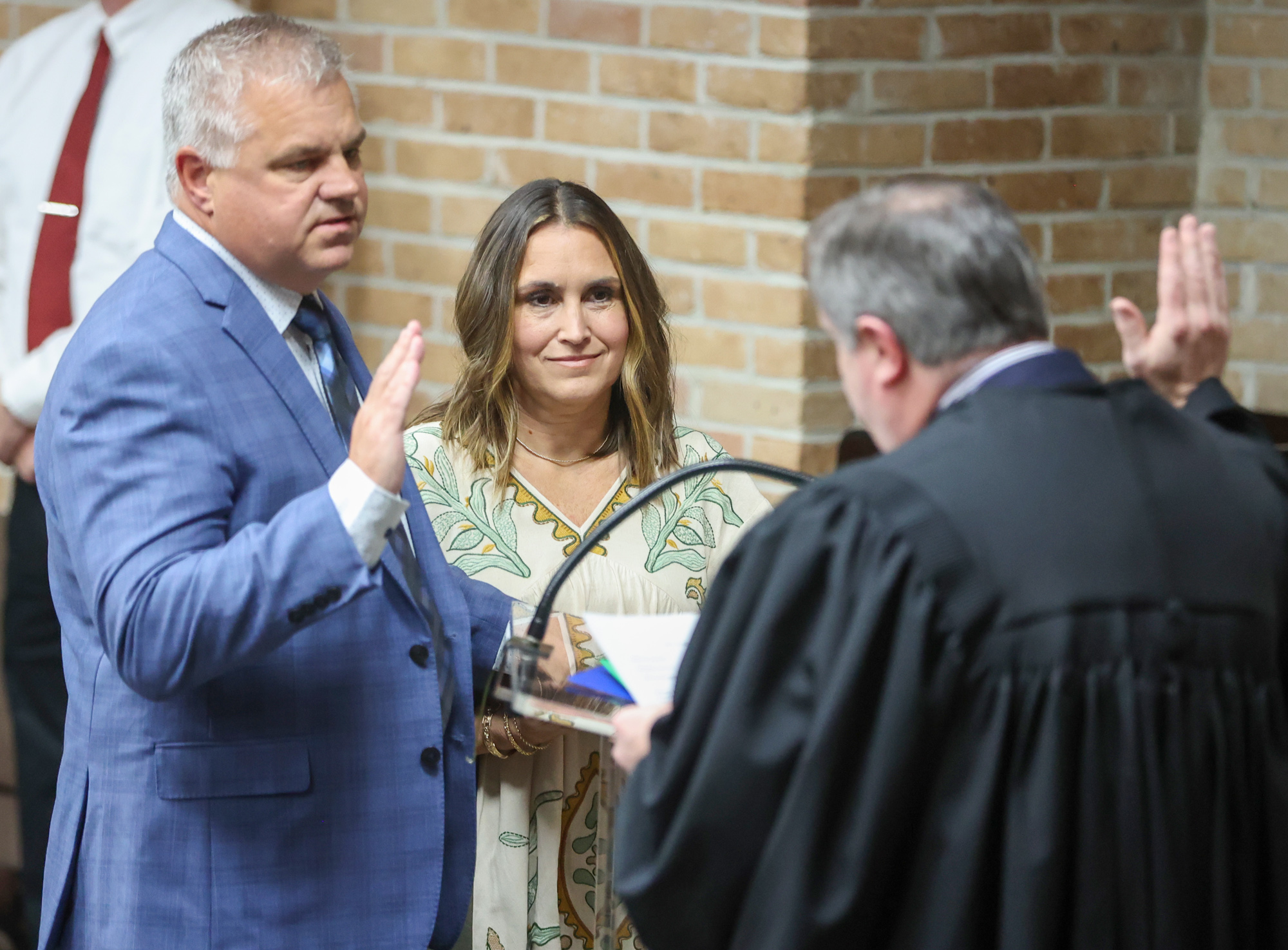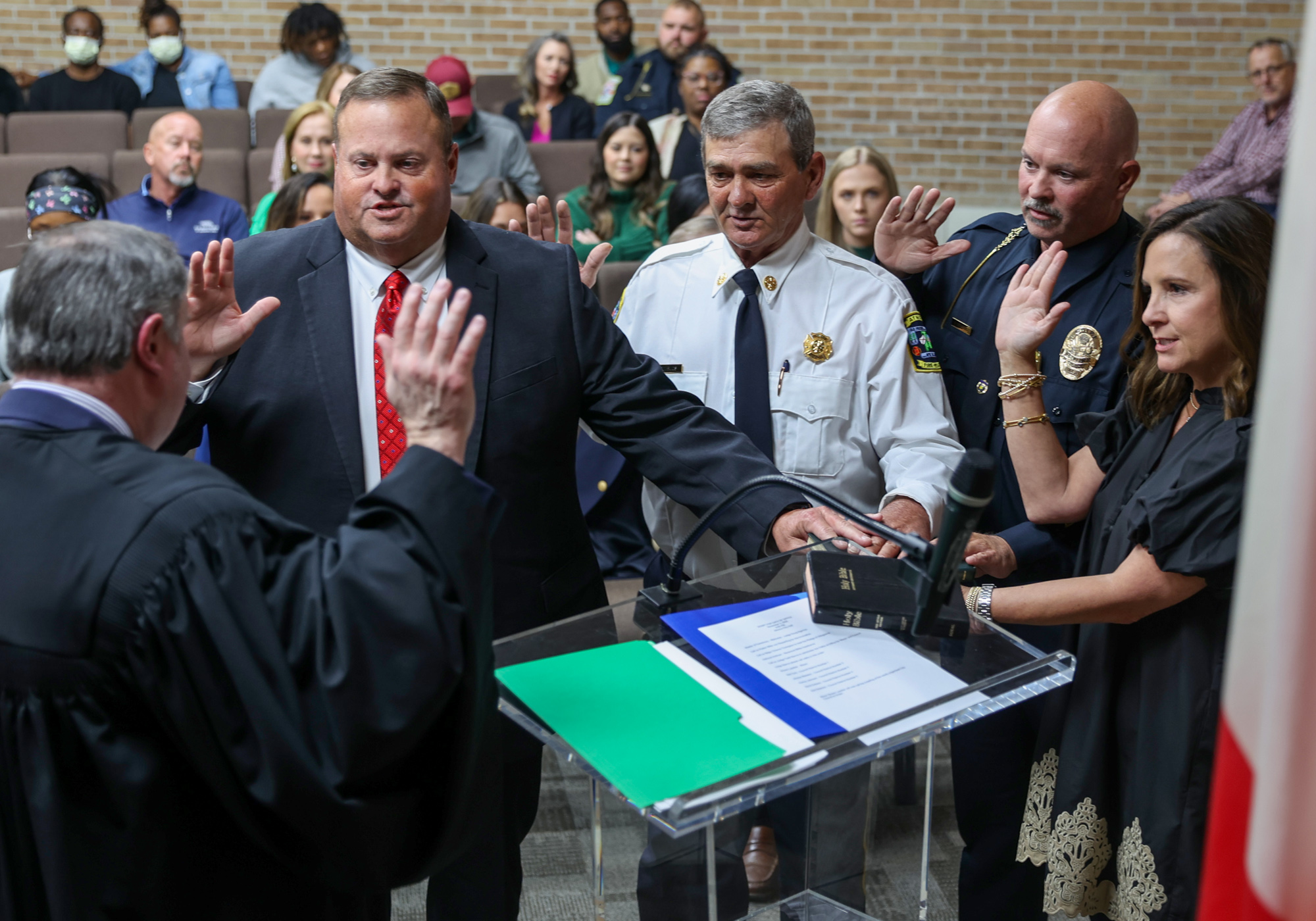 Municipal Judge Karean Reynolds, City Clerk Becca Smith, Director of Public Safety Chuck Brooks, Police Chief Ken Sessions and Fire Chief Ronald Peebles were also sworn into their positions.