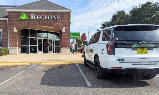 Pictured: The Ensley Branch of Regions Bank on Nine Mile Road minutes after an alleged failed robbery attempt. NorthEscambia.com photos, click to enlarge.