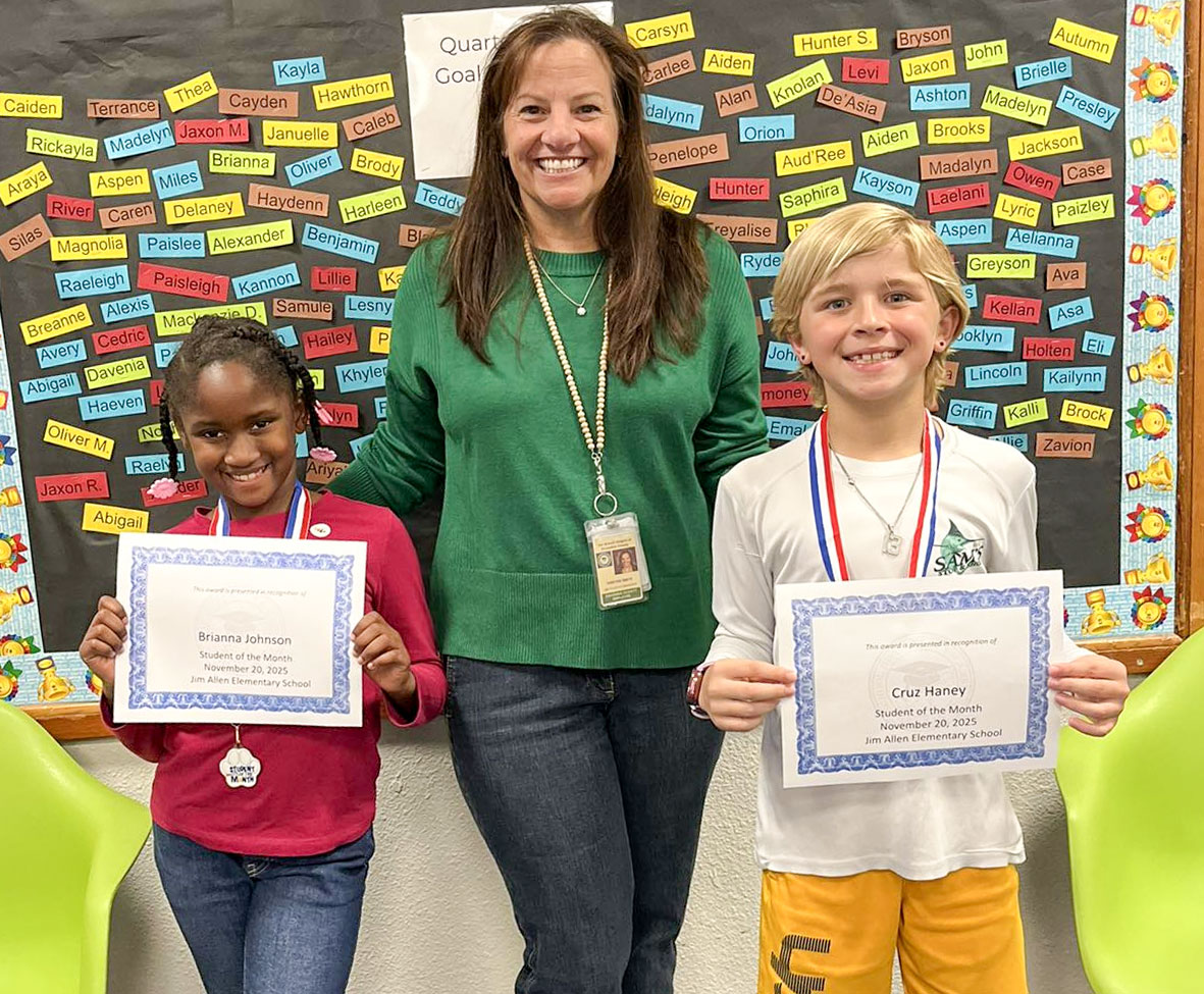 Jim Allen Elementary School recently named its November Students of the Month. They are Brianna Johnson and Cruz Hane. Photo for NorthEscambia.com, click to enlarge.