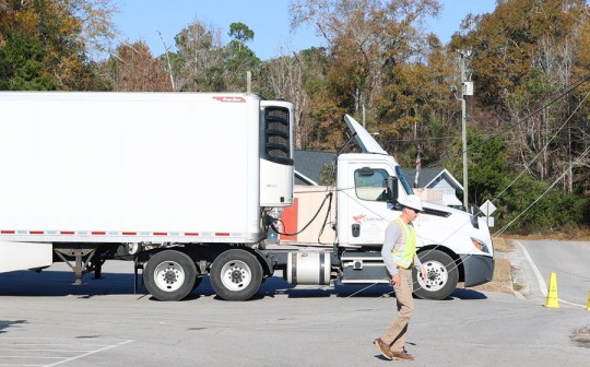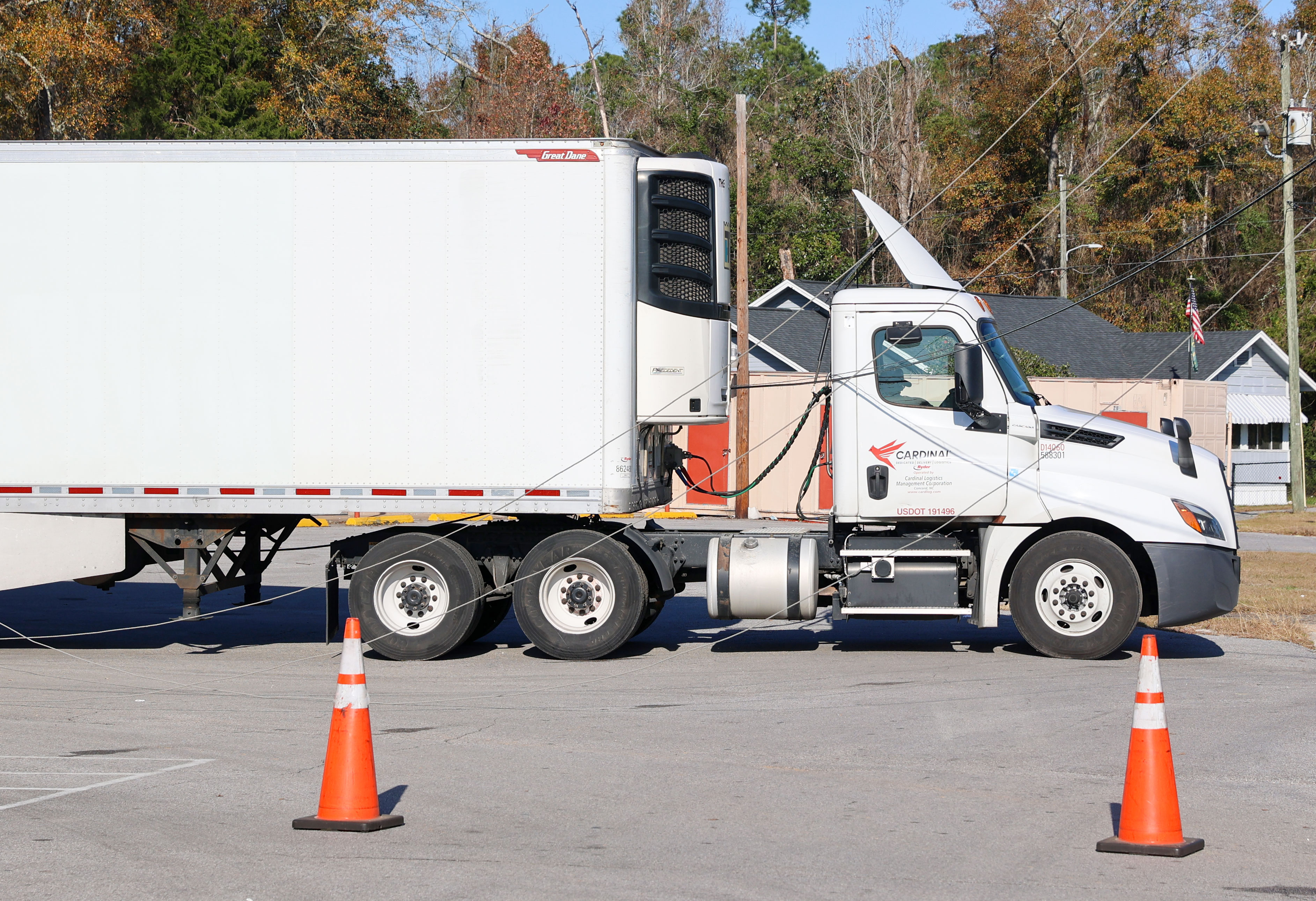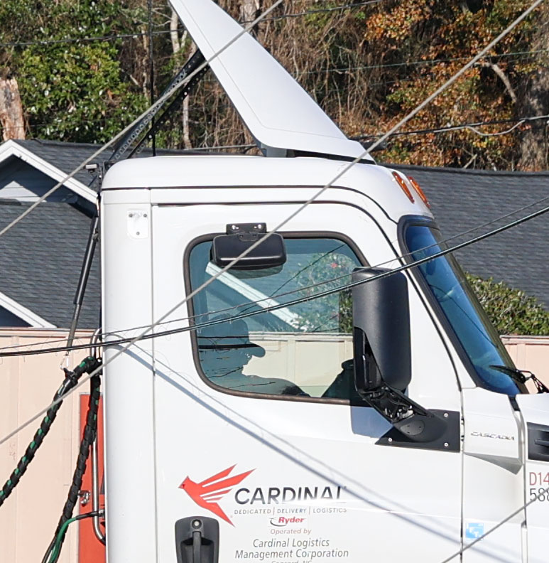 The truck snagged the low lines in the parking lot and along State Line Road by the Food Giant on North Century Boulevard about 8:35 a.m.