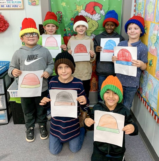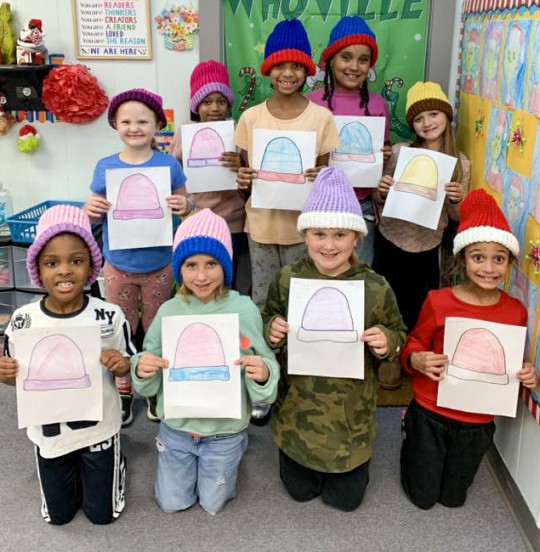 The students read the book “The Hat” by Jan Brett, and Brianna presented each with their gift.