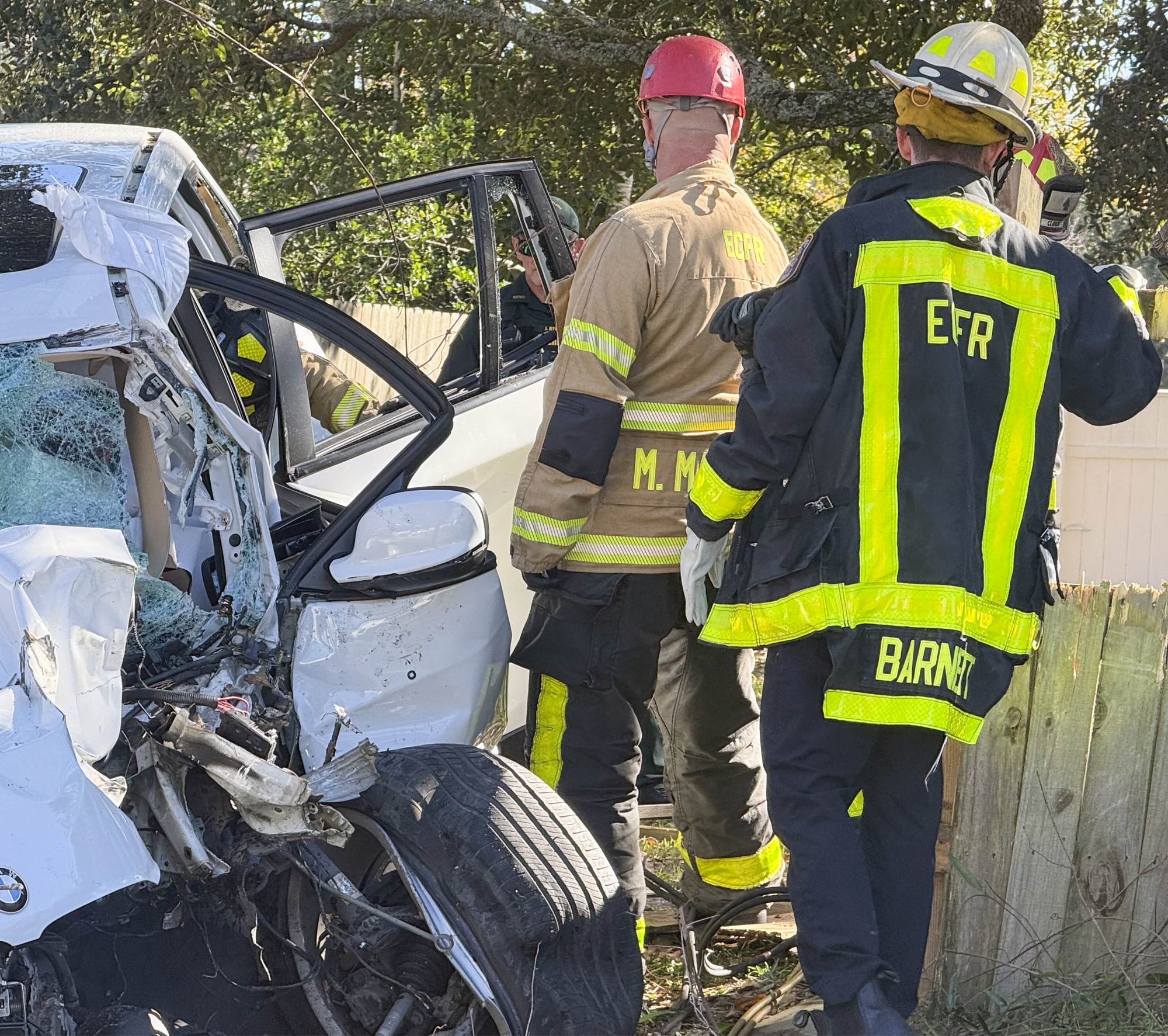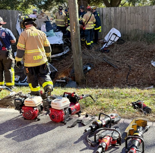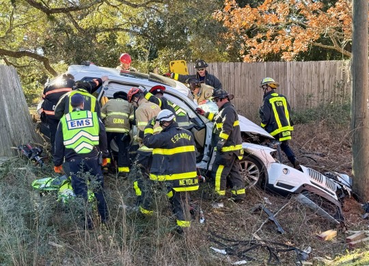 A young girl and an adult woman were seriously injured. An extended extrication was required to free the woman from the vehicle, with firefighters and special operations squads using multiple sets of the Jaws of Life and hydraulic rams to remove the roof and doors from the vehicle and push the dashboard.