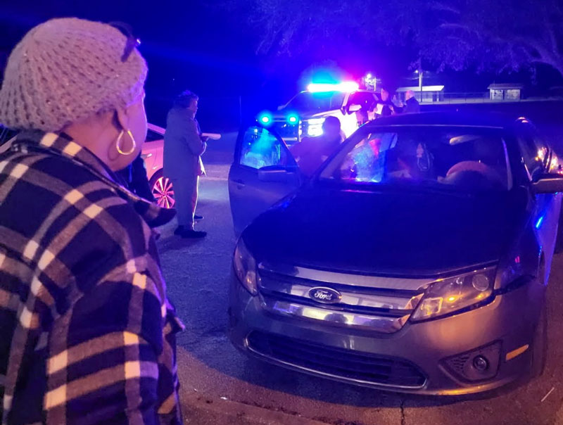 Pictured: The ECSO demonstrates a vehicle and emergency lighting Monday evening at a meeting of the Century Neighborhood Watch. Photo for NorthEscambia.com, click to enlarge.