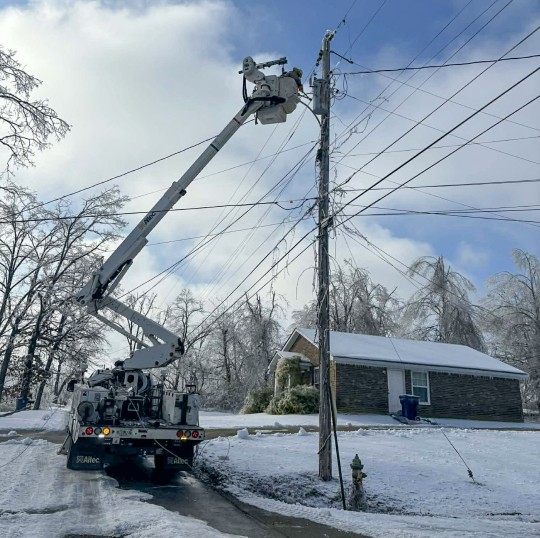 EREC Linemen Work To Restore Power In Northern Mississippi After Ice Storm
