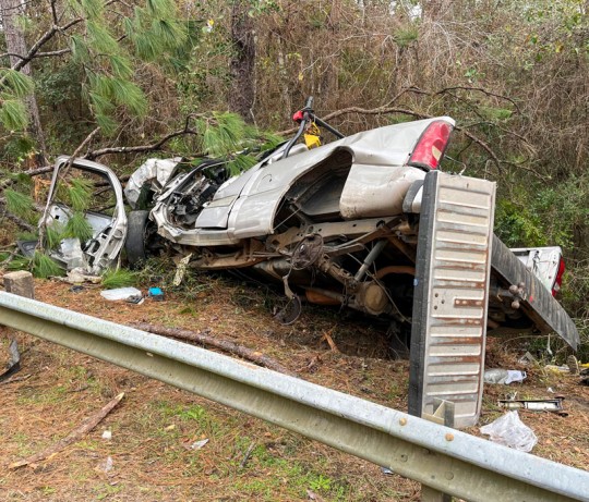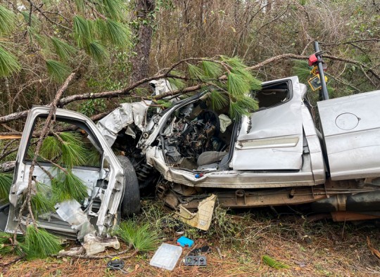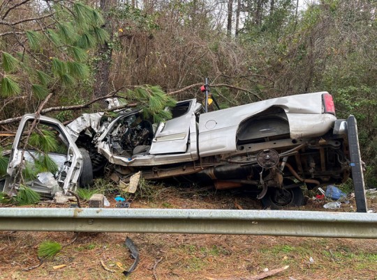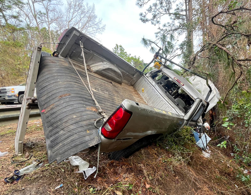 The Florida Highway Patrol said the 50-year-old Pensacola man attempted to pass another vehicle in his pickup truck and ran off Quintette Road near Rocky Branch Road. The vehicle then traveled over a guardrail and struck two trees.