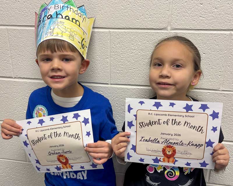 Lipscomb Elementary School has named its Students of the Month for January. They are Graham Harris and Isabella Almonte-Knapp.Photo for NorthEscambia.com, click to enlarge.